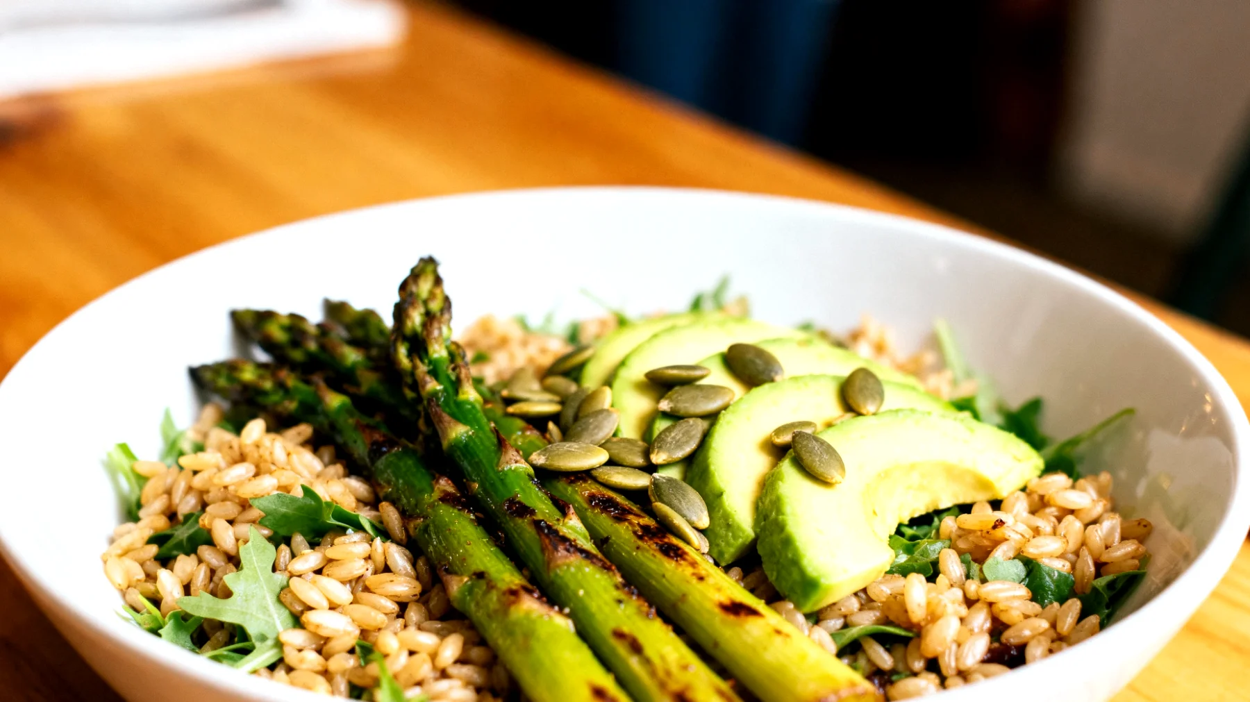 La scelta del farro come fonte di carboidrati è coerente con l’obiettivo di avere un pasto a indice glicemico moderato. I cereali integrali, incluso il farro, presentano in genere un indice glicemico e un carico glicemico inferiori rispetto a prodotti raffinati come riso bianco e pasta non integrale, grazie al maggior contenuto di fibre e alla struttura dell’amido. Per chi affronta pomeriggi impegnativi in ufficio, un pasto a base di cereali integrali riduce il rischio di brusche oscillazioni glicemiche che possono essere associate a sonnolenza e calo di concentrazione.