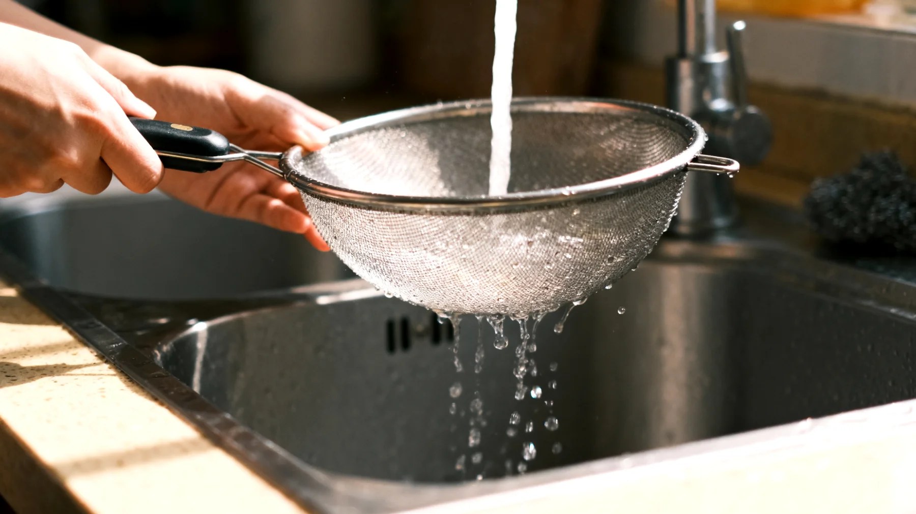 C’è un aspetto che sfugge completamente alla maggior parte delle persone: i residui invisibili. Non tutti i contaminanti lasciano tracce visibili. Oli, proteine, micro-particelle di cibo possono rimanere intrappolati nella rete anche quando il colino appare perfettamente pulito a occhio nudo. Questi residui invisibili possono alterare il sapore degli alimenti filtrati successivamente.