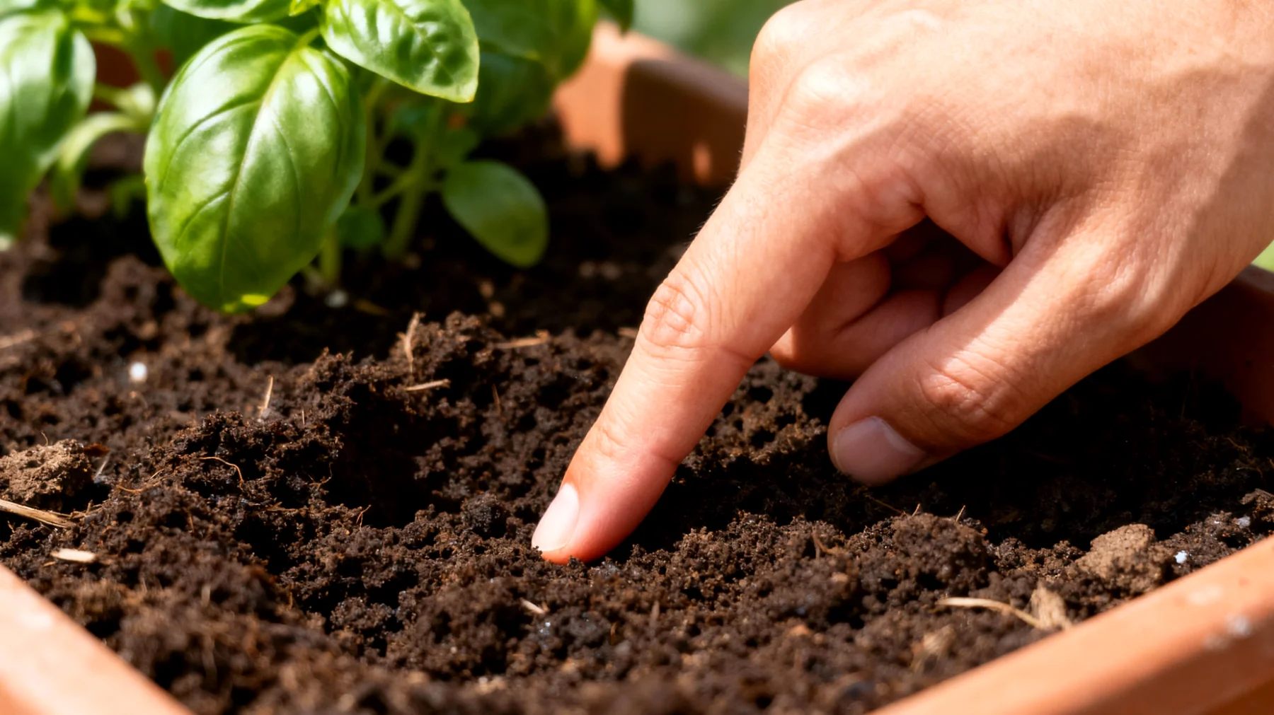 Nel periodo estivo, questo controllo va fatto quasi ogni giorno. Le temperature elevate e la maggiore insolazione accelerano l’evapotraspirazione, e il terreno si asciuga rapidamente. In primavera e autunno, ogni 2–3 giorni possono bastare, mentre in inverno la frequenza si riduce ulteriormente. Il basilico preferisce poca acqua ma regolare, e solo quando serve.