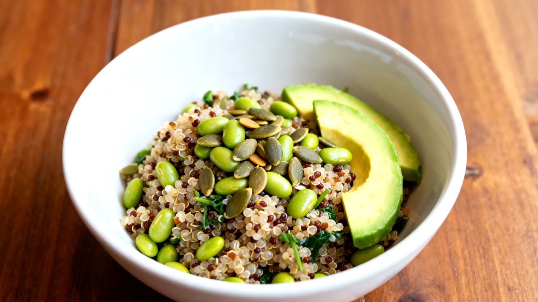 La particolarità di questo piatto risiede nell’abbinamento strategico tra quinoa ed edamame, due fonti che insieme forniscono tutti e nove gli aminoacidi essenziali. La quinoa contiene infatti lisina in quantità superiori rispetto ad altri cereali, mentre gli edamame apportano metionina e cisteina. Questa sinergia crea una proteina completa paragonabile a quella animale, fondamentale per la sintesi dei neurotrasmettitori che regolano umore, attenzione e memoria.